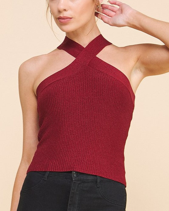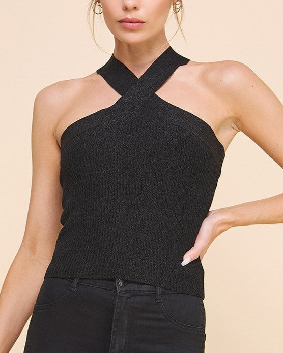 Two Tone Split V-Neck Top - Navy - FINAL SALE