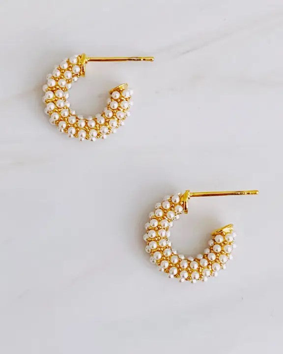 Mini Pearls Mini Hoop Earrings