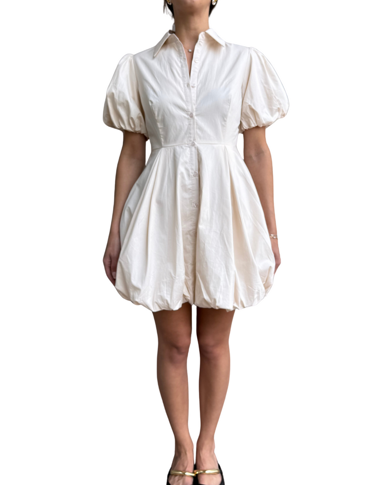 Mini Bubble Shirt Dress - Eggshell