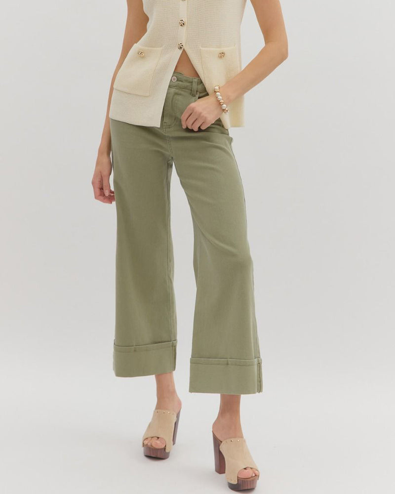 Wide Leg Suede Pants - Cream - FINAL SALE