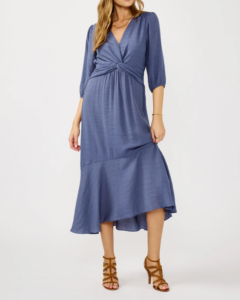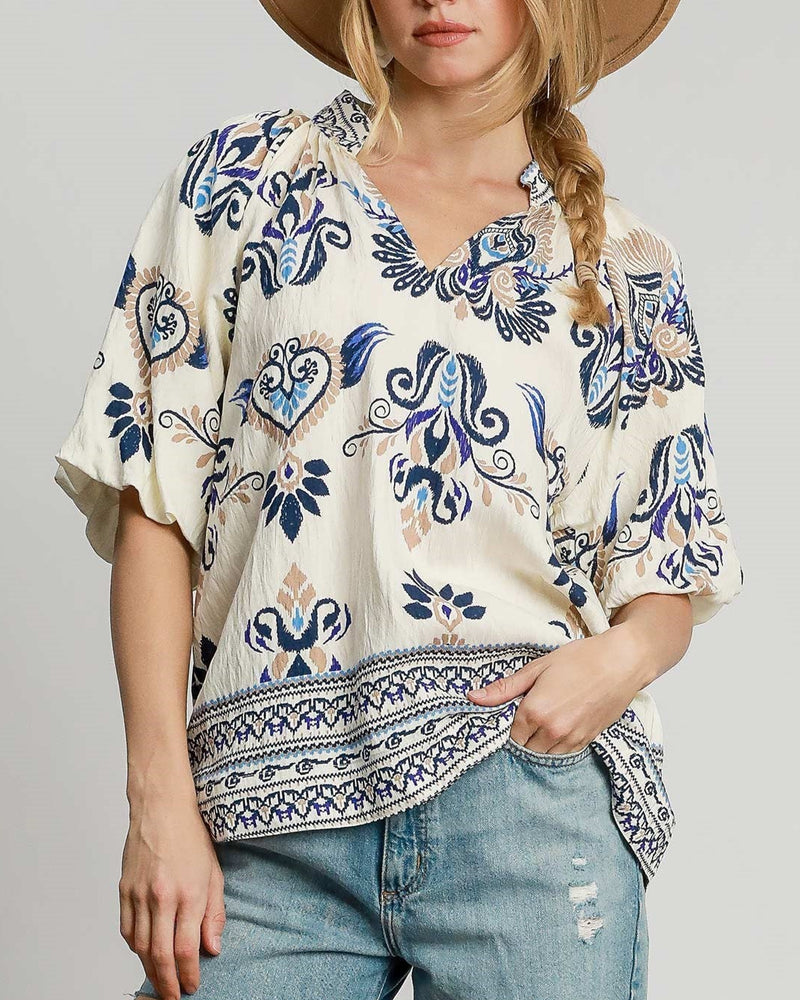Two Tone Split V-Neck Top - Navy - FINAL SALE