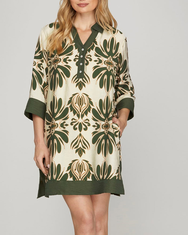 Printed Maxi Dress - Cream/Green - FINAL SALE