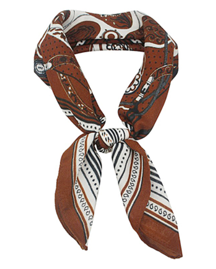 Retro Paisley Print Bandana Scarf - Brown
