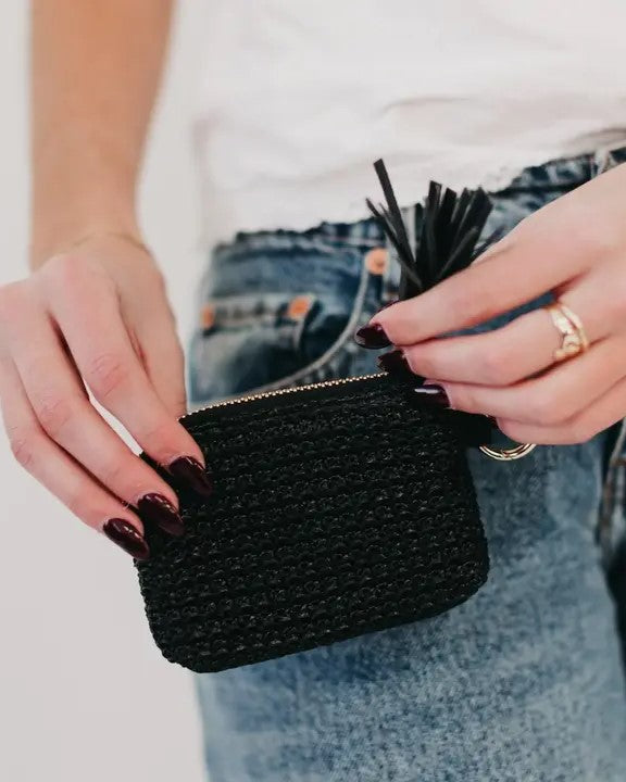 River Raffia Clip Card Holder Wallet - Black