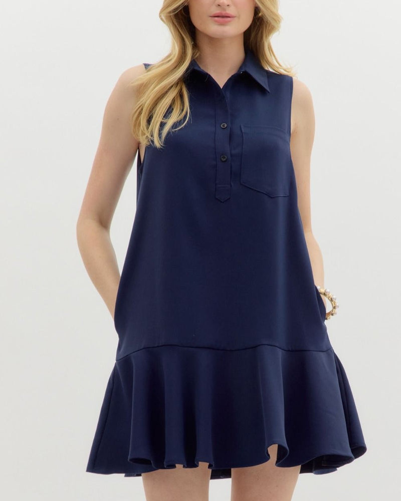 Ruffle Hem Mini Dress - Navy- FINAL SALE