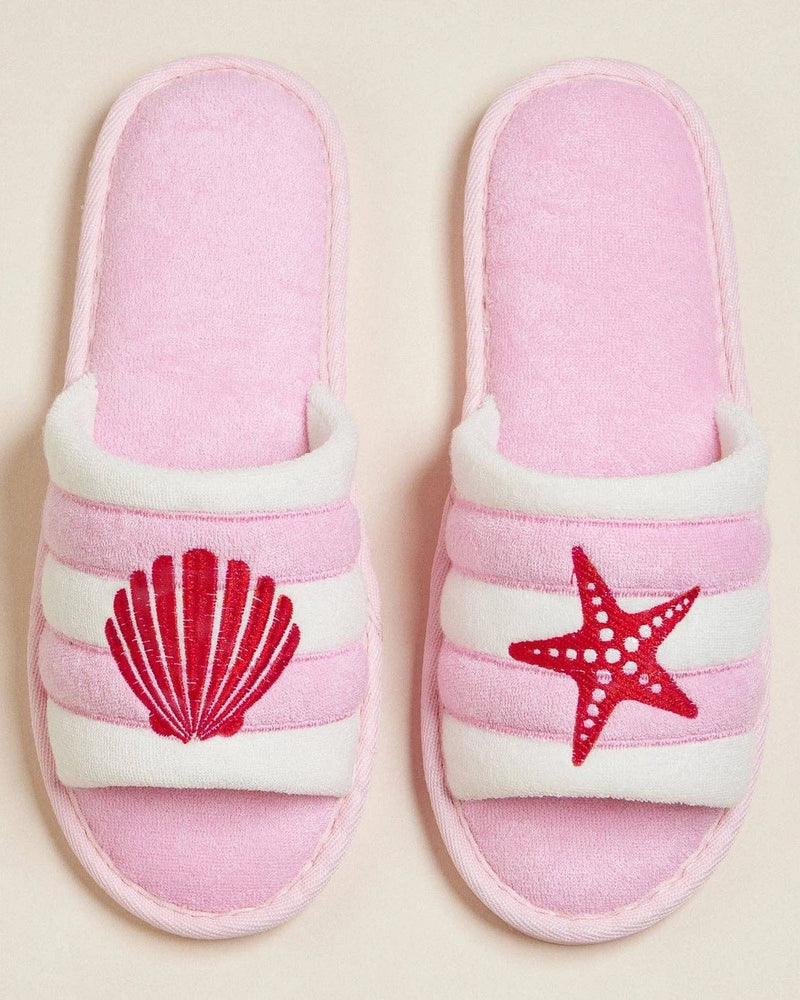 Sea Shell & Starfish Embroidered Terry Slides - Pink - FINAL SALE