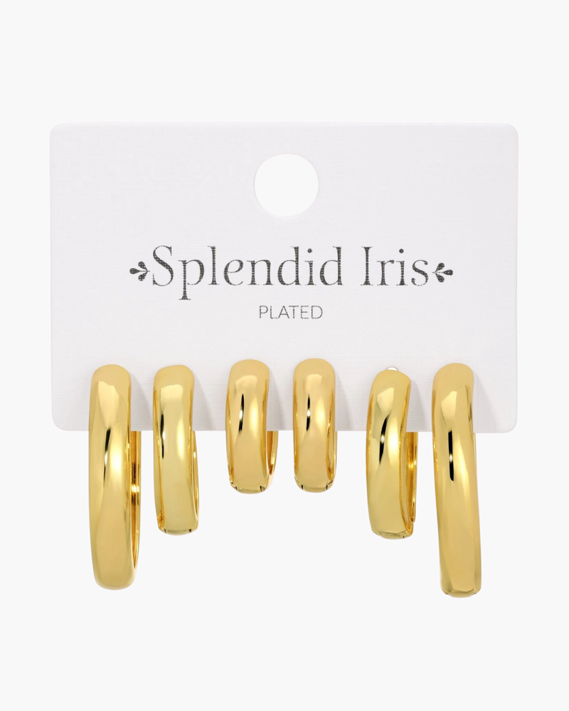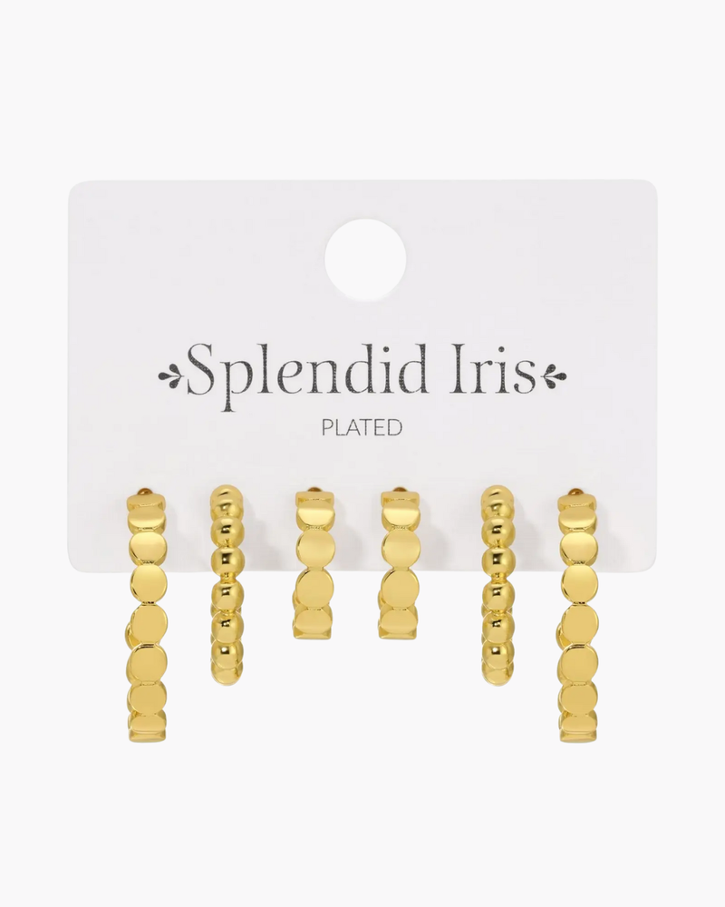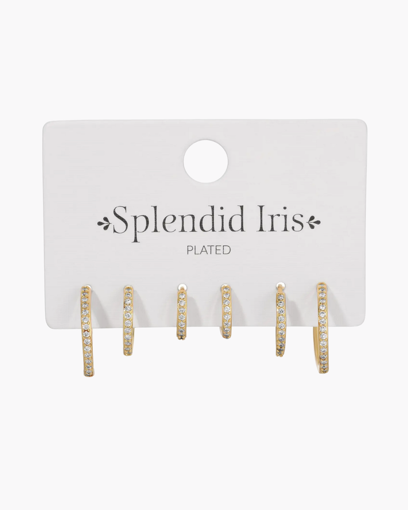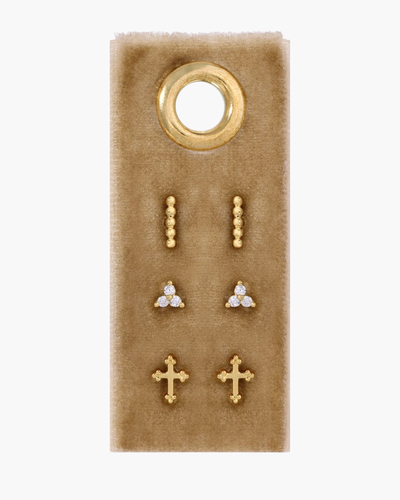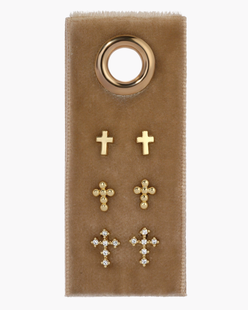 Set of 3 Multi Cross Studs on Velvet Tag - Gold