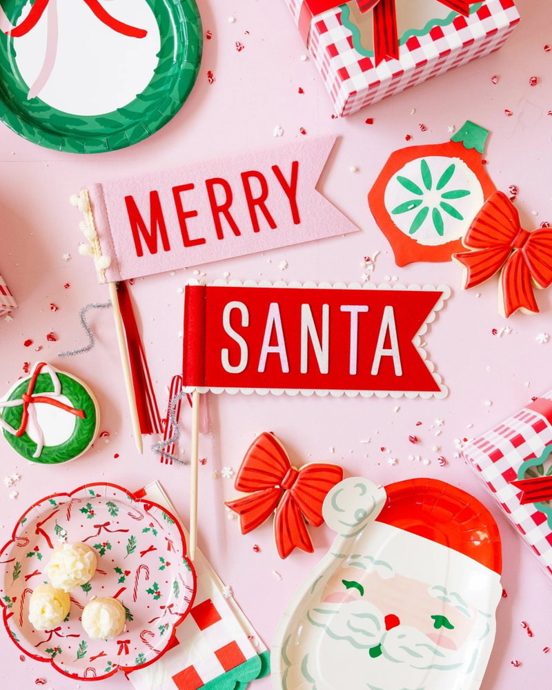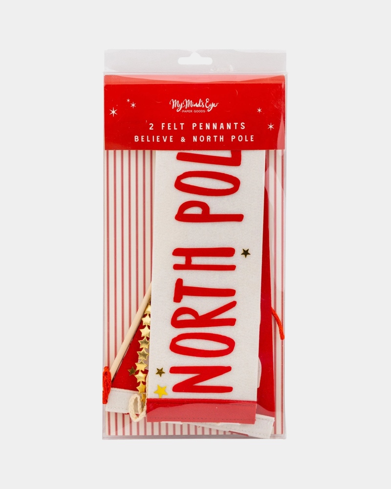 Set of 2 Medium Felt Pennants - Santa/Merry