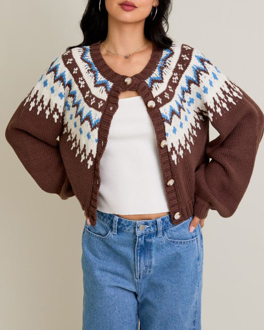 Sweater Cardigan - Brown Multi
