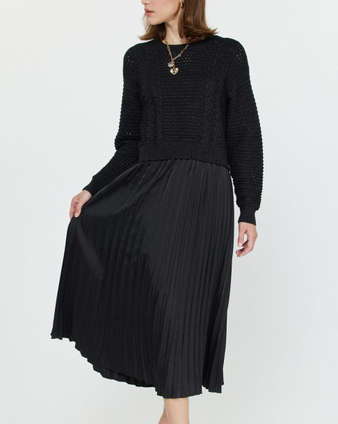 Sweater & Pleated Dress Set - Black