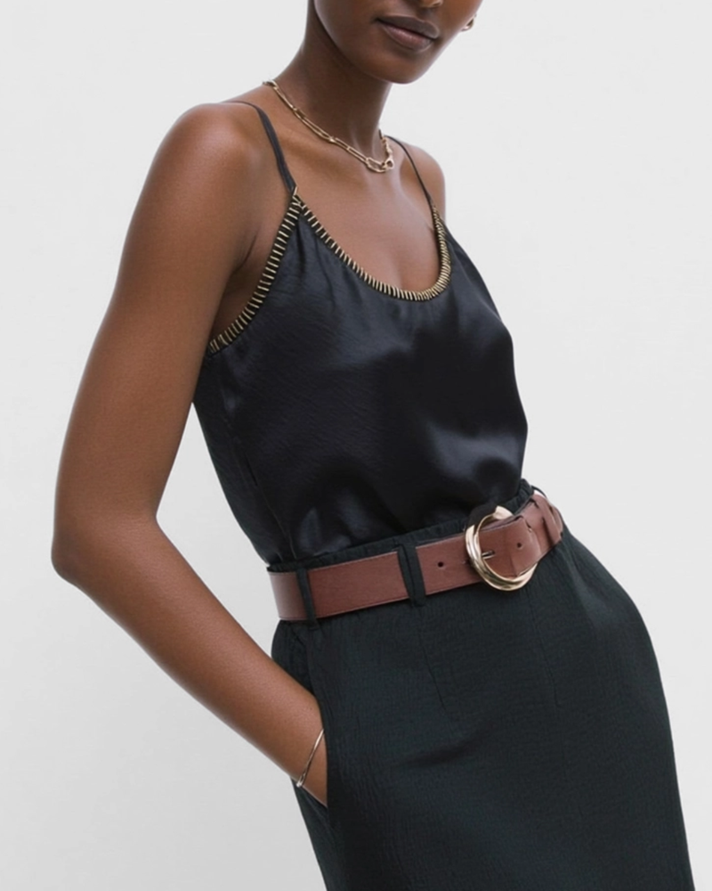Whipstitch Short Sleeve Blouse - Crimson Red