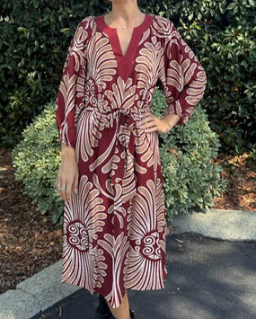 Abstract Print Midi Dress - Wine