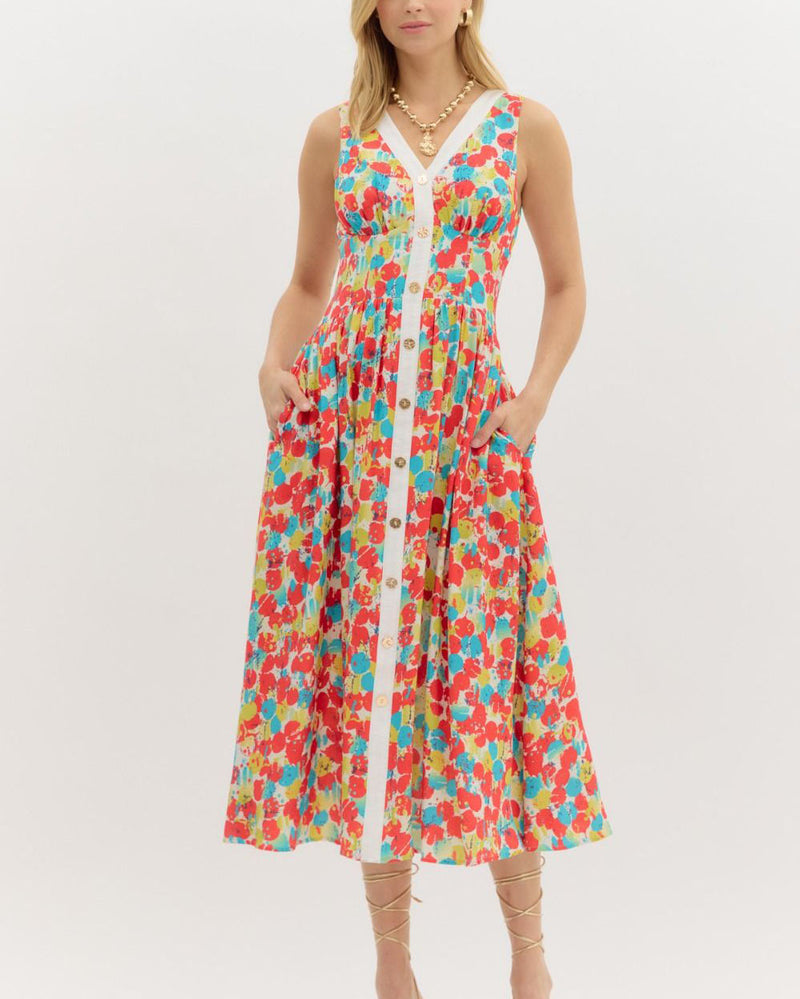 Abstract Print Midi Dress - Red - FINAL SALE