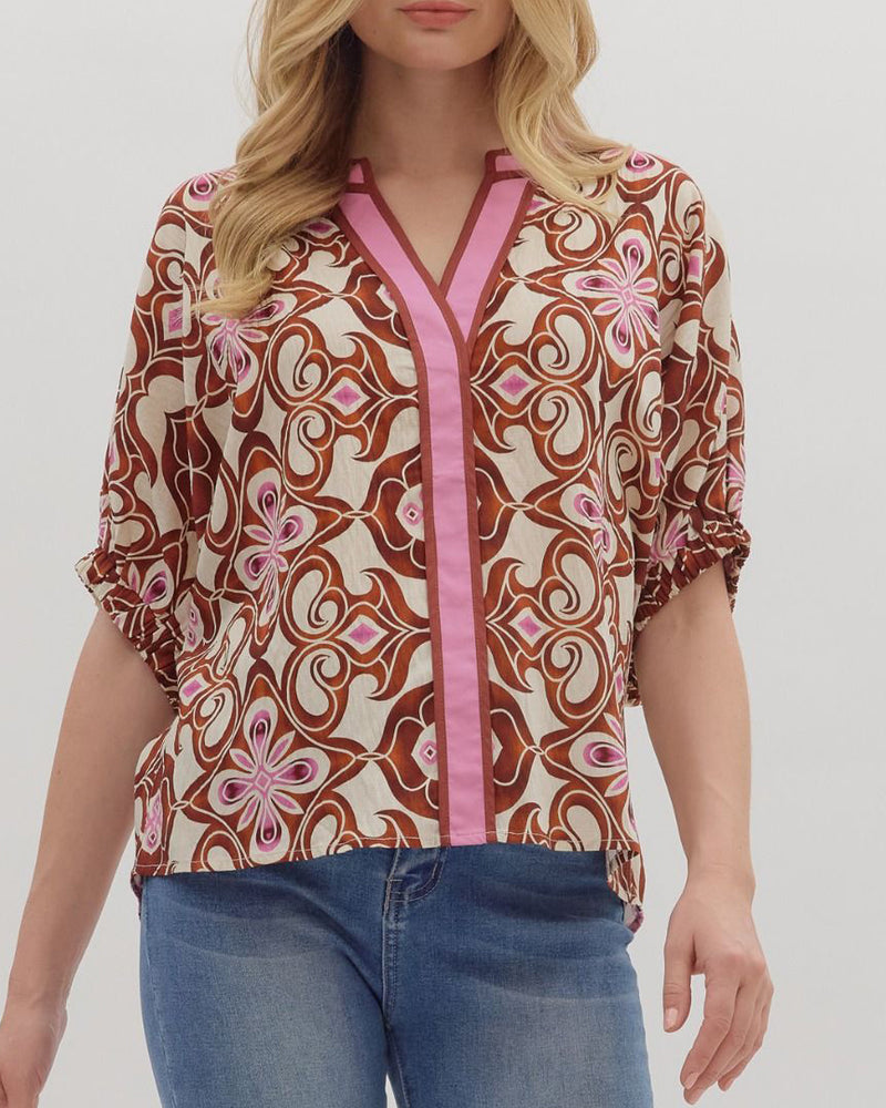 Abstract Print Top - Brown