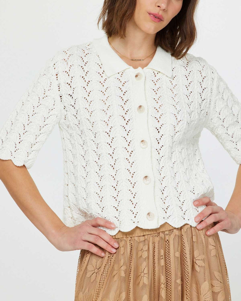 Crochet Button Front Cardigan - Ivory - FINAL SALE