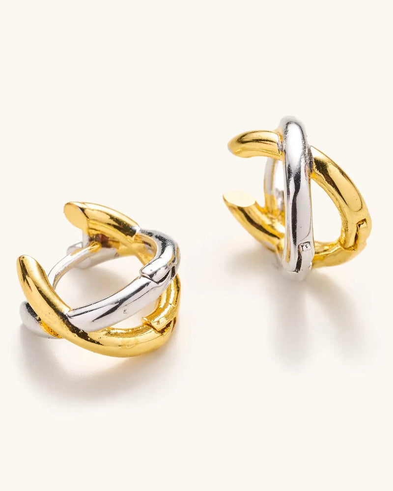 Criss Cross Mixed Metal Huggies
