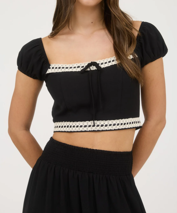 Crop Top with Lace Detail - Black - FINAL SALE
