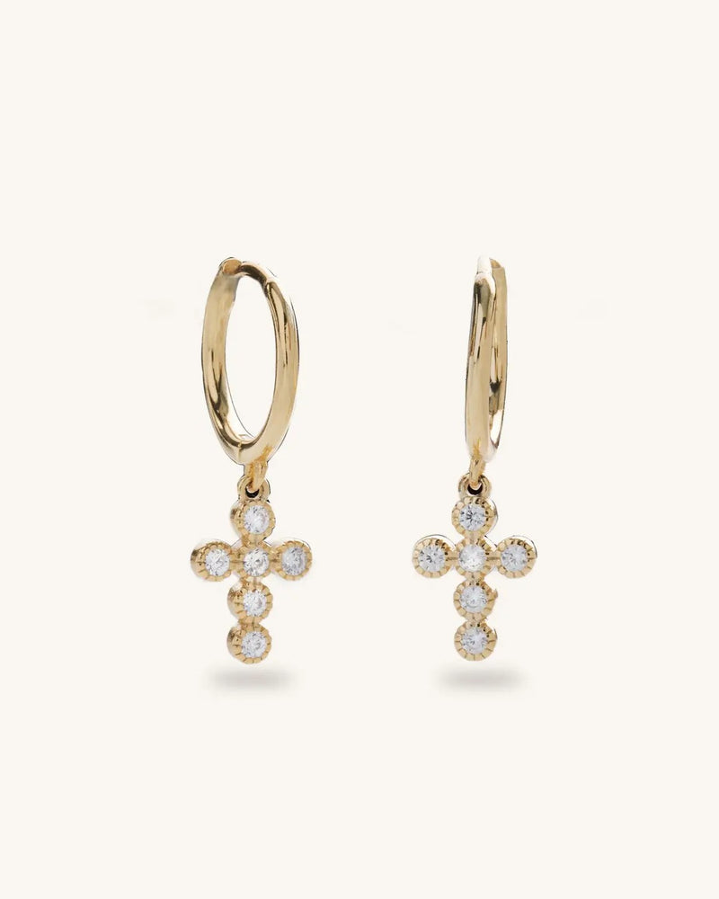 Crystal Cross Huggies - Gold