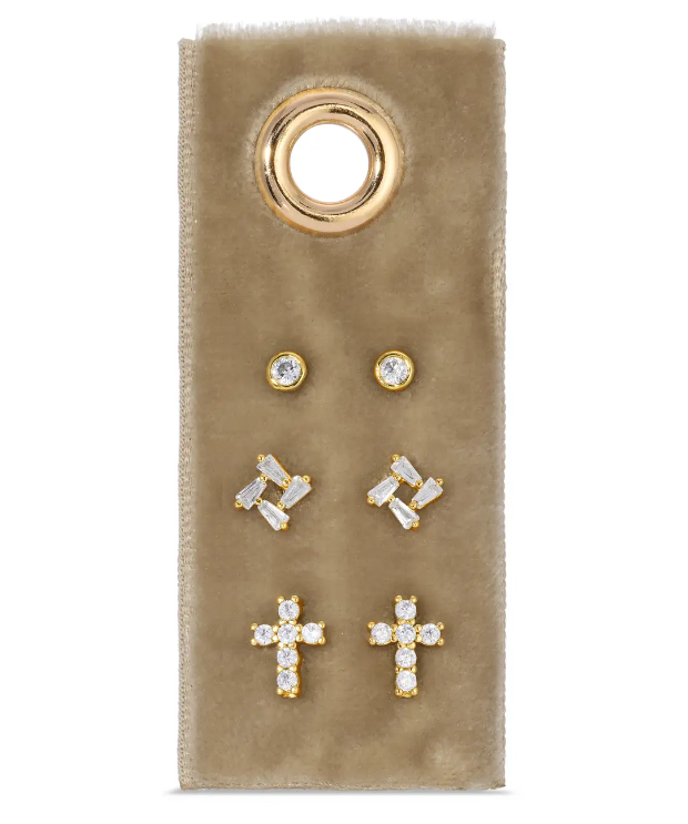 Cross Earrings Set - Gold