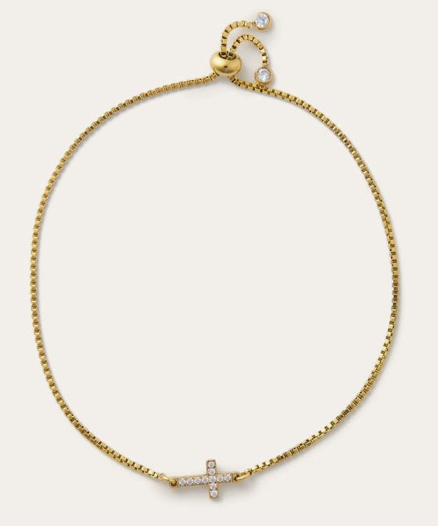 Crystal Cross Slider Bracelet, Waterproof - Gold