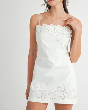 Cut Out Embroidered Mini Dress - Off White - FINAL SALE