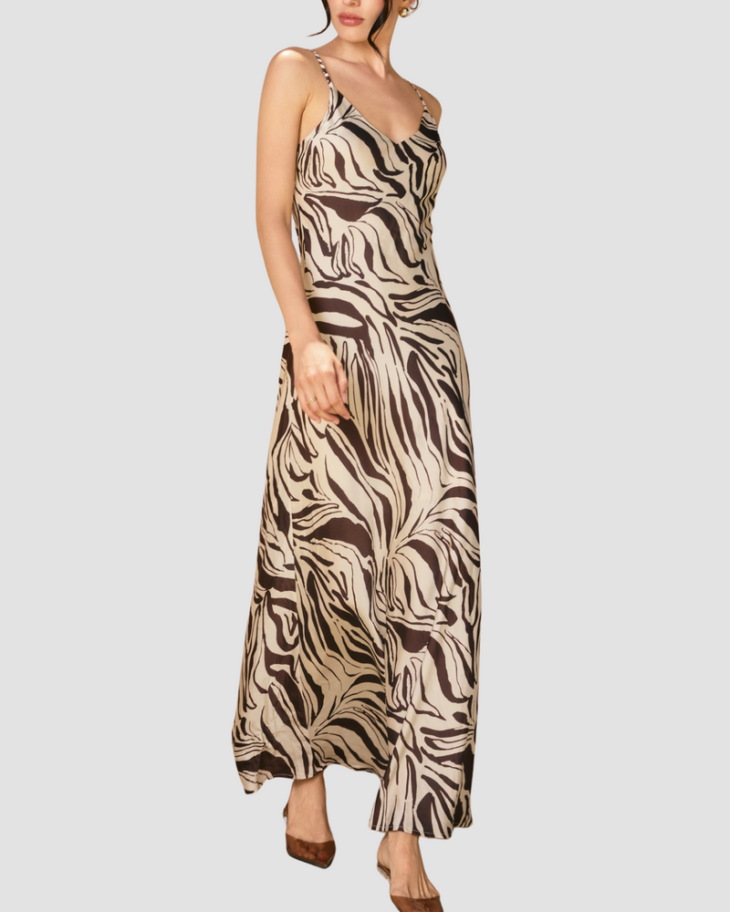 Drifted Earth Bias Maxi Dress - Brown/Ecru