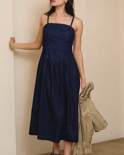 Drop Point Waist Midi Dress - Denim - FINAL SALE