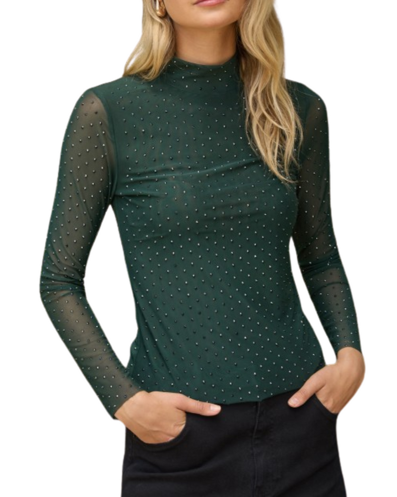 Embellished Mesh Top - Hunter Green - FINAL SALE