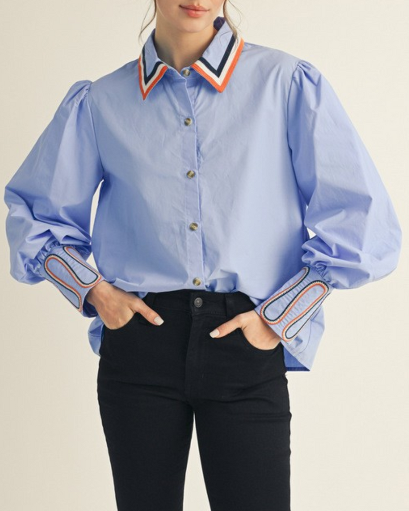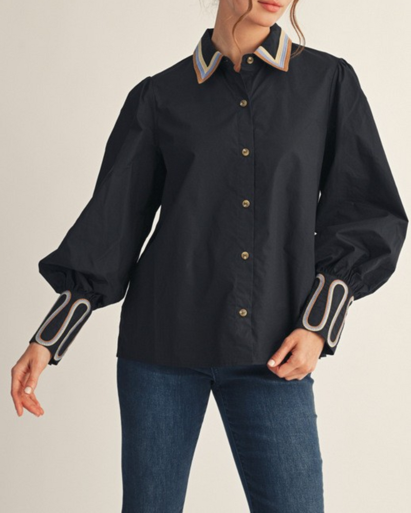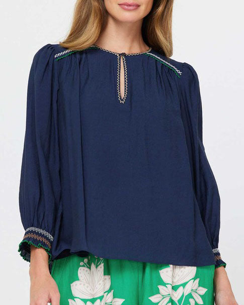 Embroidered Detail Blouse - Navy - FINAL SALE