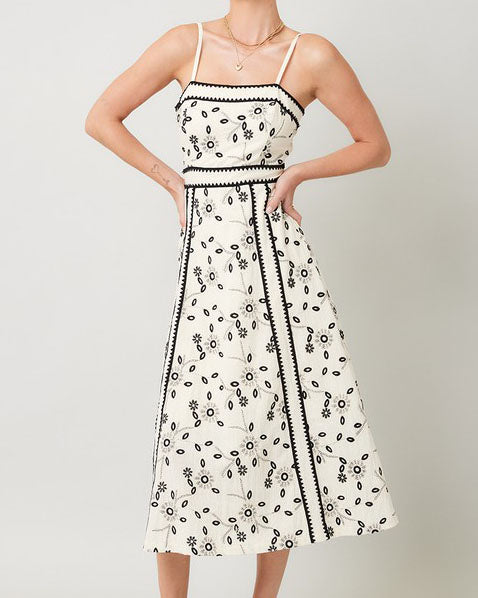Embroidered Lace Midi Dress - Natural/Black - FINAL SALE
