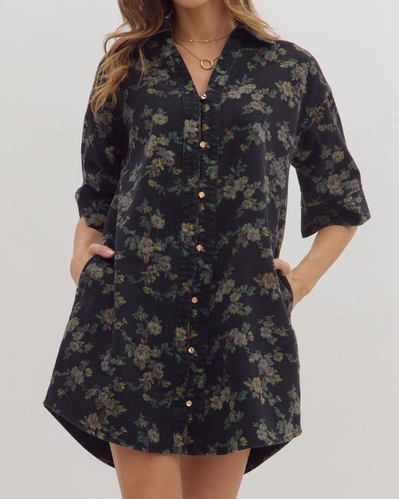 Floral Print Midi Dress - Black Mix - FINAL SALE
