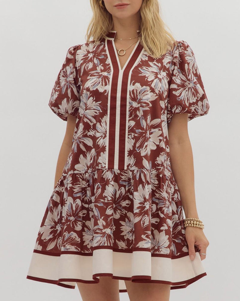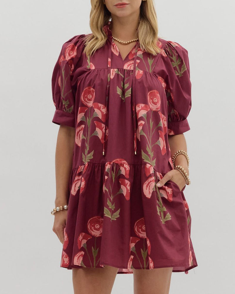 Floral Mini Dress - Burgundy Red - FINAL SALE