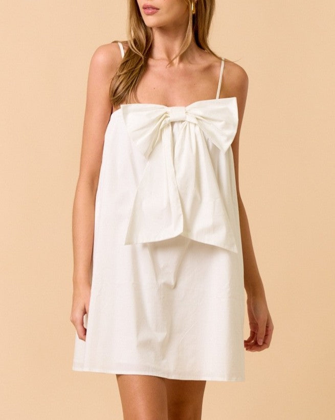 Front Bow Mini Dress with Pockets - White - FINAL SALE