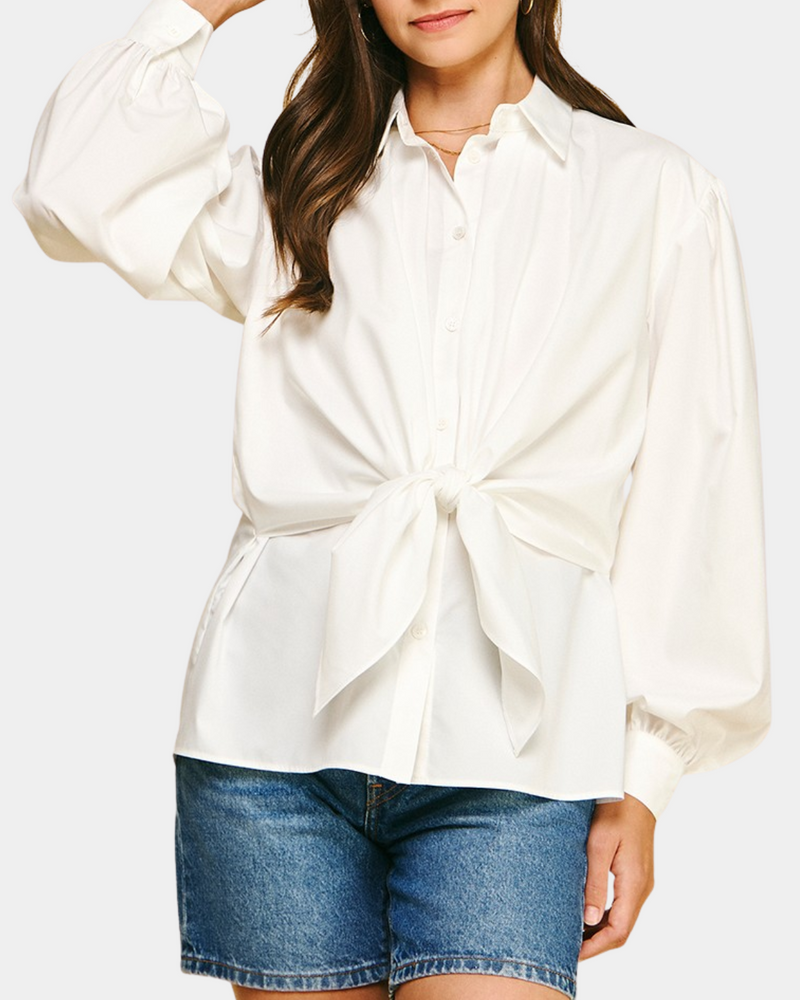 Front Tie Button Down Top- Off White