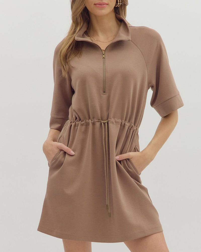 Front Zip Mini Dress - Mocha