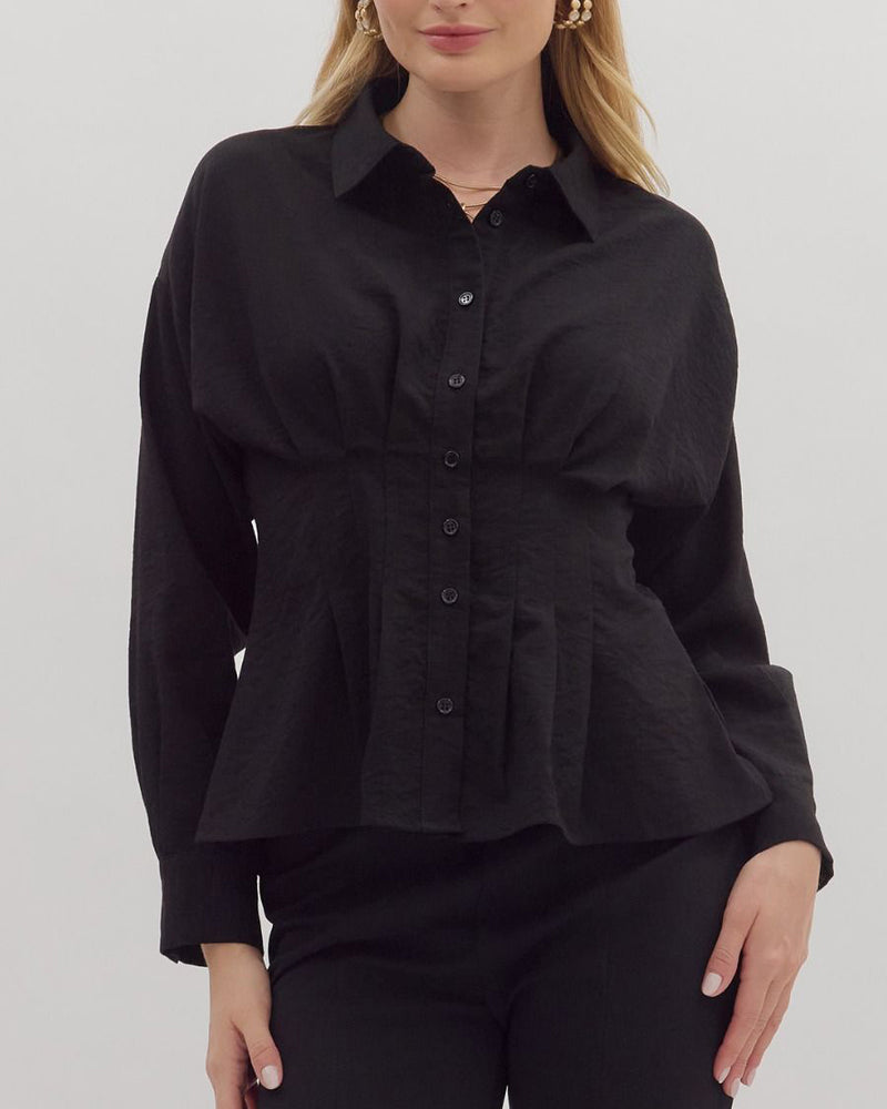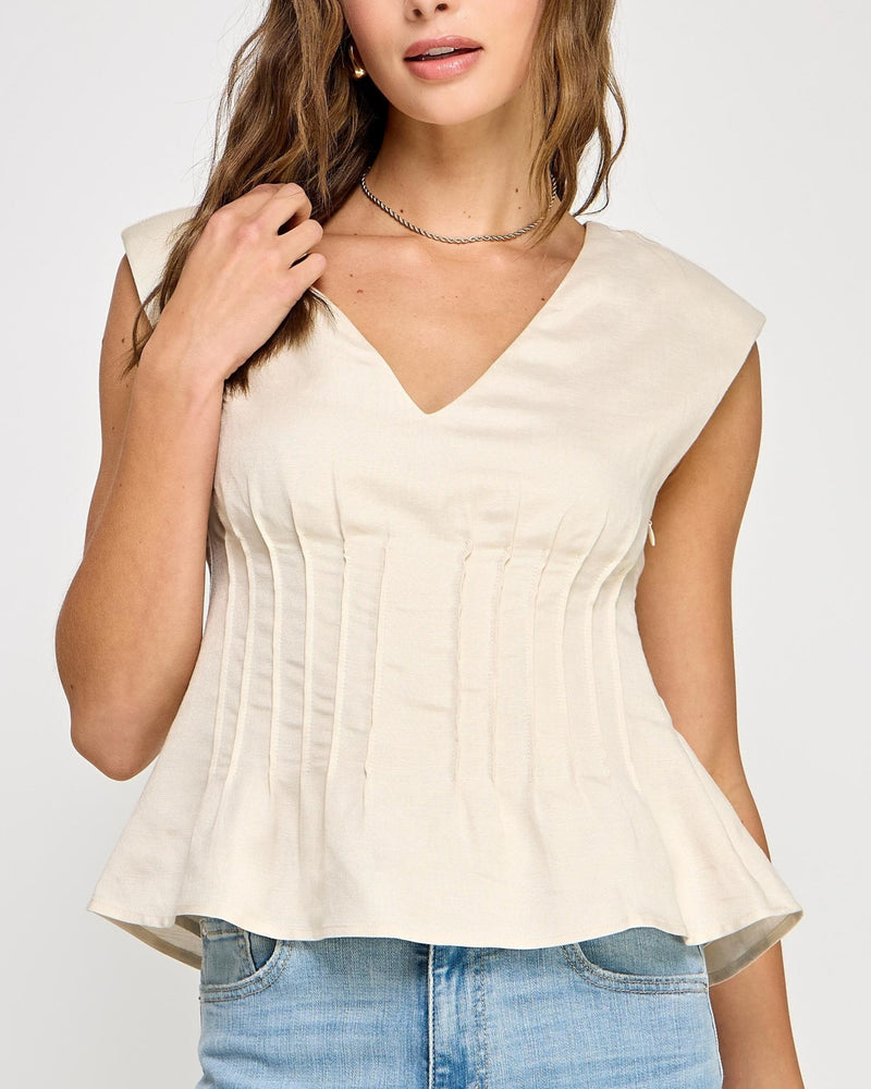 Pintuck Detail V-Neck Linen Blouse - Ecru - FINAL SALE