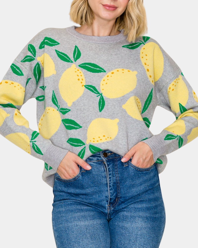 Lemon Print Top and Bottoms Set - Cream/Yellow - FINAL SALE