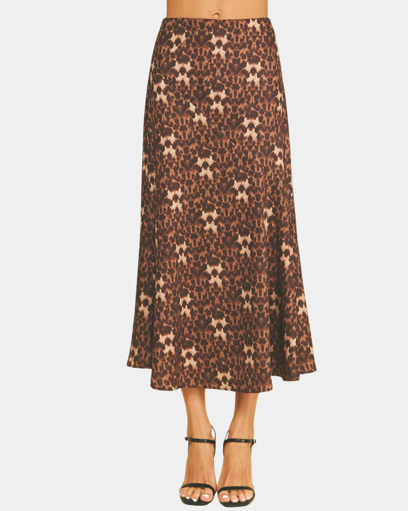 Block Detailed Midi Skirt - Leopard