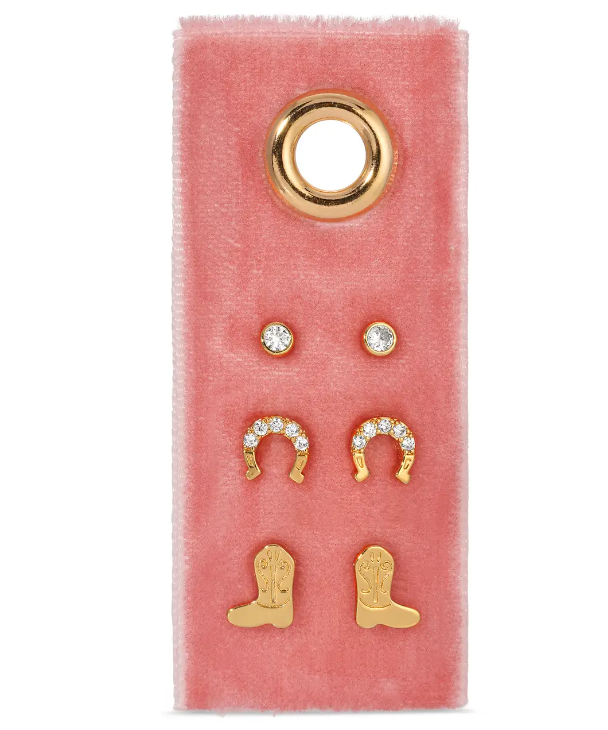 Boots, Studs and Horseshoe, Set of 3 Earrings - Gold