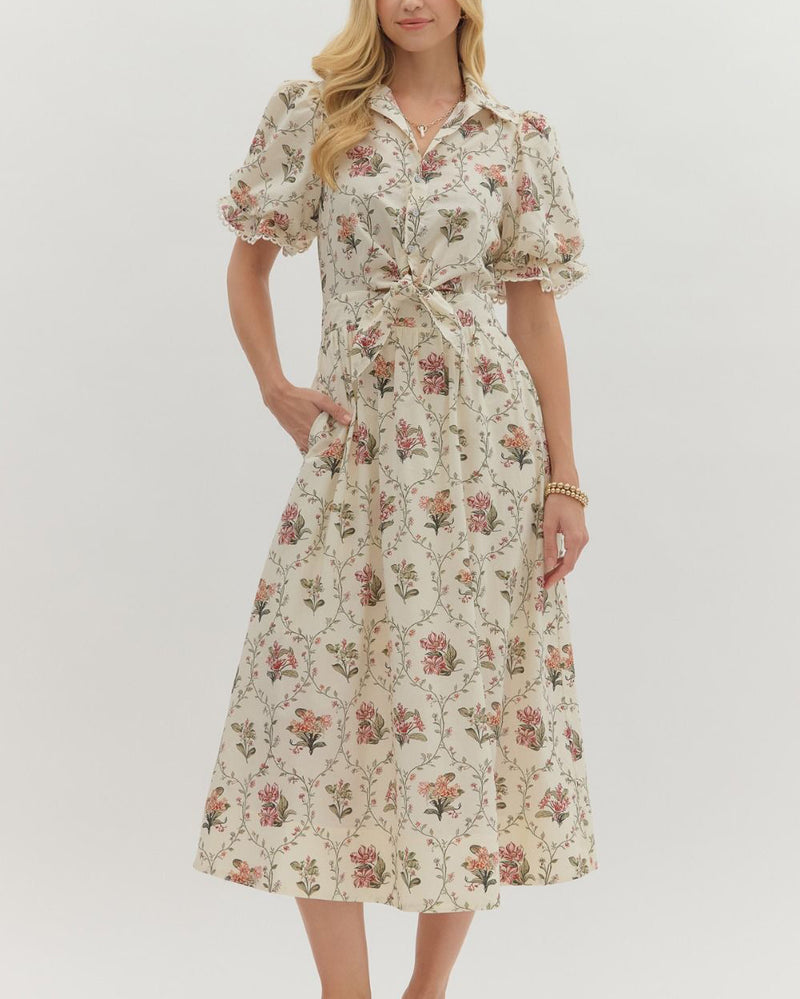 Botanical Print Midi Dress - Ecru