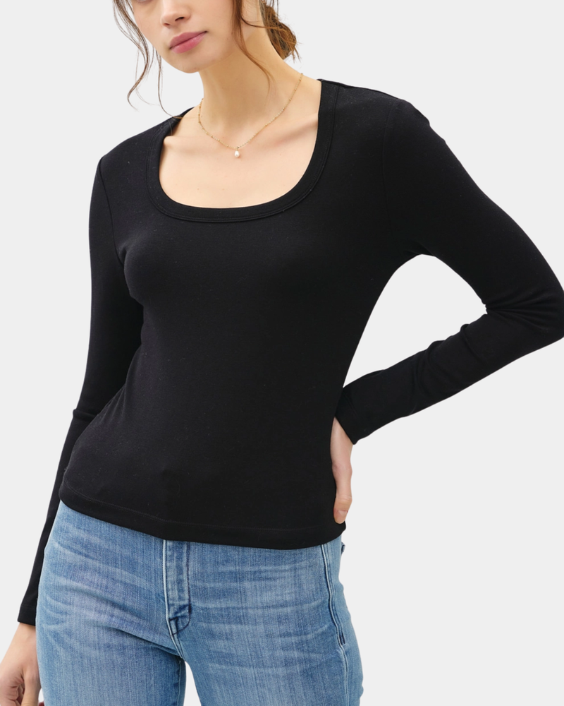Scoop Neck Long Sleeve Top - Black