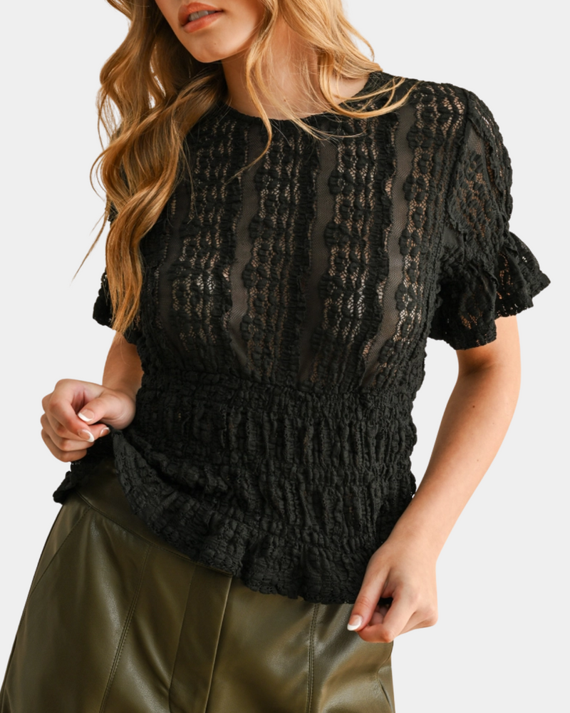 Short Sleeve Lace Blouse - Black - FINAL SALE