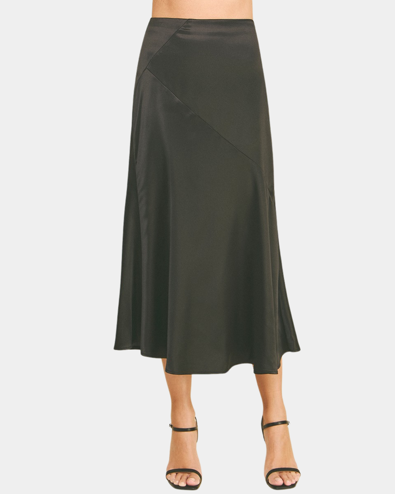 Silk Block Detailed Midi Skirt - Black