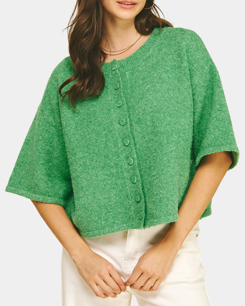 Short Sleeve Sweater Top - Green