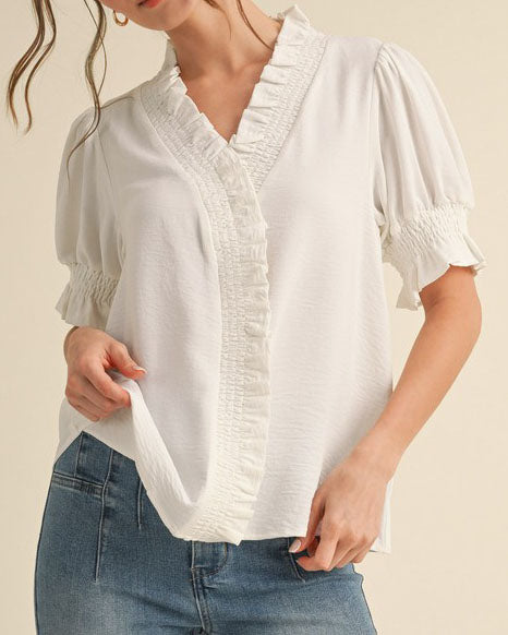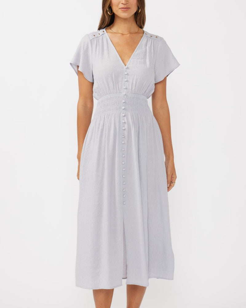 Smocked Waist Dress with Slit - Dove- FINAL SALE