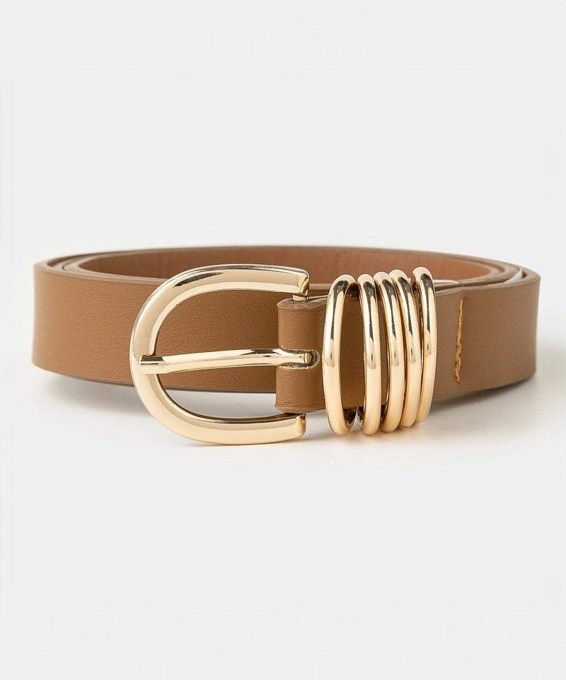 Multi Ring Leather Belt - Brown/Gold