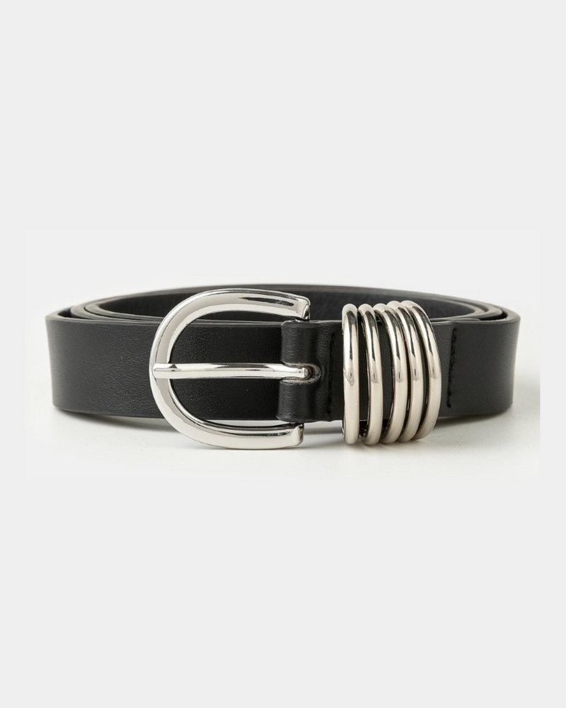 Multi Ring Leather Belt - Black/Silver