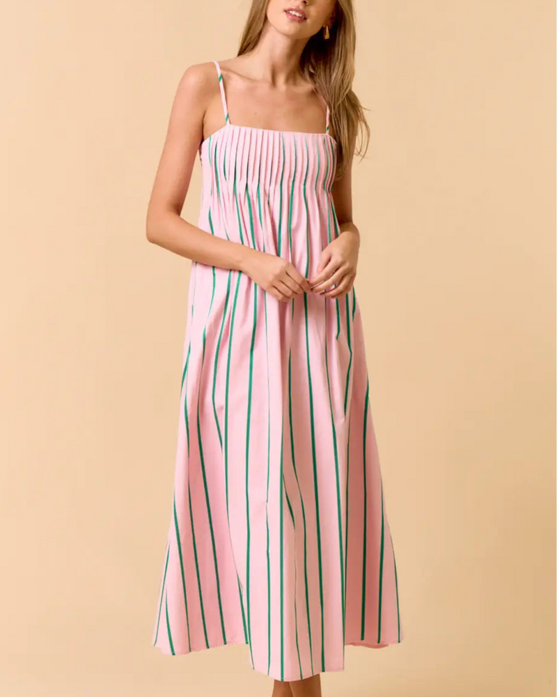 Spaghetti Strap Striped Maxi Dress - Pink/Green - FINAL SALE