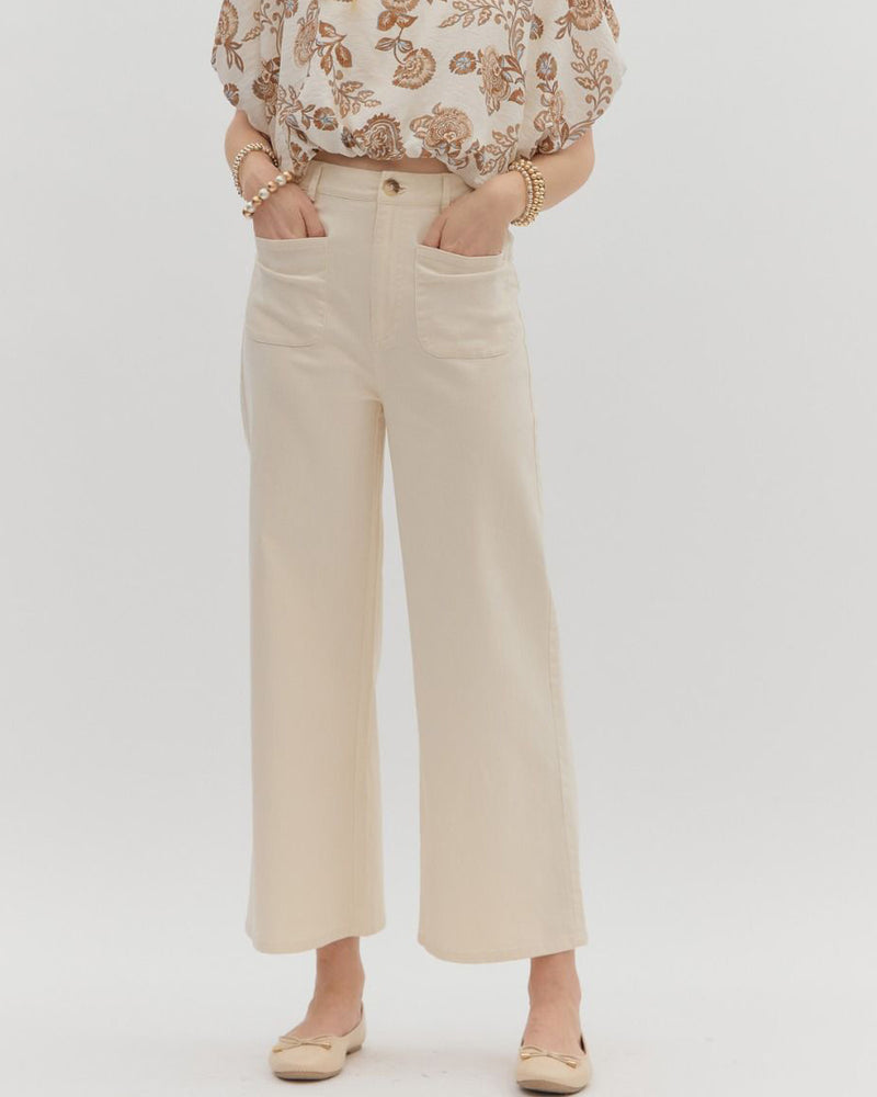 High Waisted Wide Leg Pants - Ecru - FINAL SALE