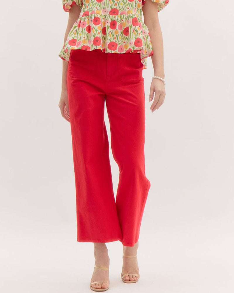 High Waisted Wide Leg Pants - Red - FINAL SALE
